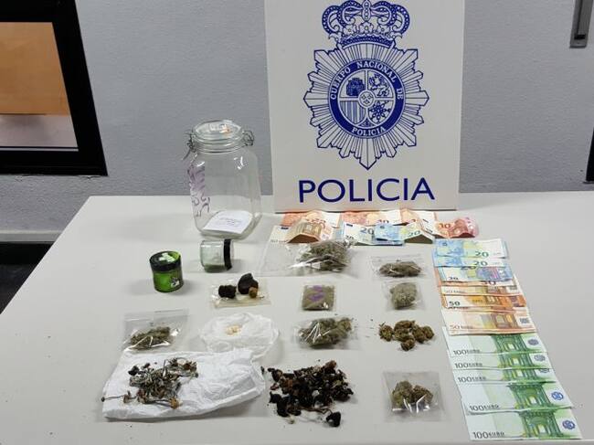 En el registro se aprehendieron varios cogollos compactos de color verde, con fuerte olor a marihuana, con un peso de 24,39 gramos; varios trozos de sustancia, al parecer hachís, con un peso de 34,14 gramos; una sustancia blanca que dio positivo a MDMA (éxtasis) con un peso de 8,83 gramos; y dinero en metálico por un total de 990 euros. Tras la instrucción del correspondiente atestado, el detenido fue puesto a disposición de la autoridad judicial.