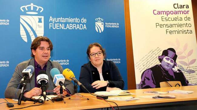 El alcalde de Fuenlabrada y la concejala de Igualdad durante la presentación de las Jornadas Clara Campoamor. / Ayuntamiento Fuenlabrada