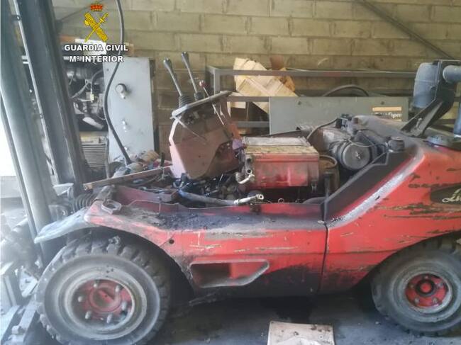 Estas personas, fueron sorprendidas por una patrulla de la Guardia Civil recogiendo y desmontando maquinaria del interior de las instalaciones - sin estar autorizadas para ello – después de forzar la puerta de entrada con un objeto contundente. Se ha recuperado todo el material que en ese momento se disponían a cargar en dos vehículos.