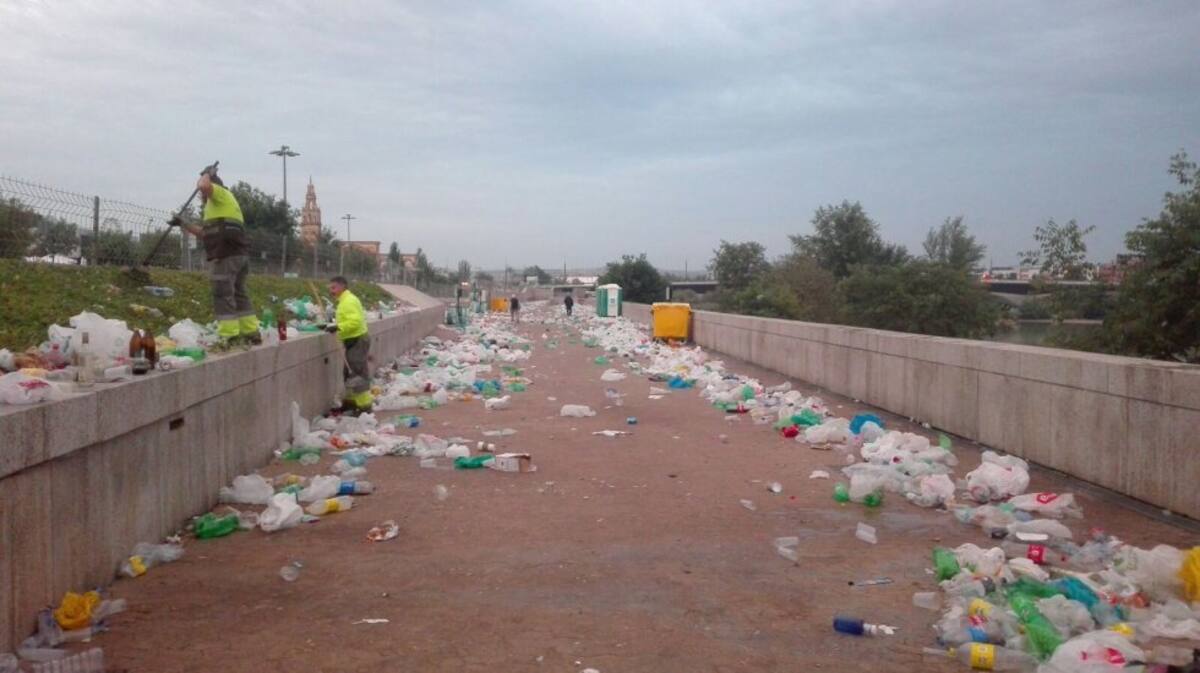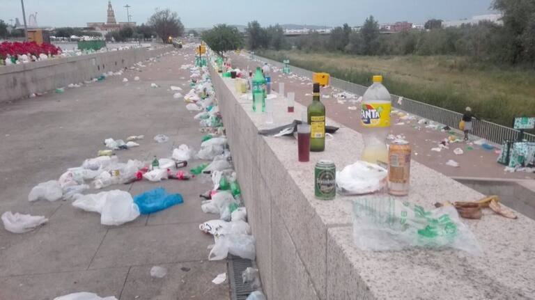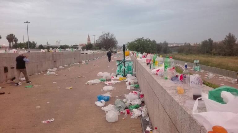Panorámica del Balcón del Guadalquivir tras el botellón de feria de 2018