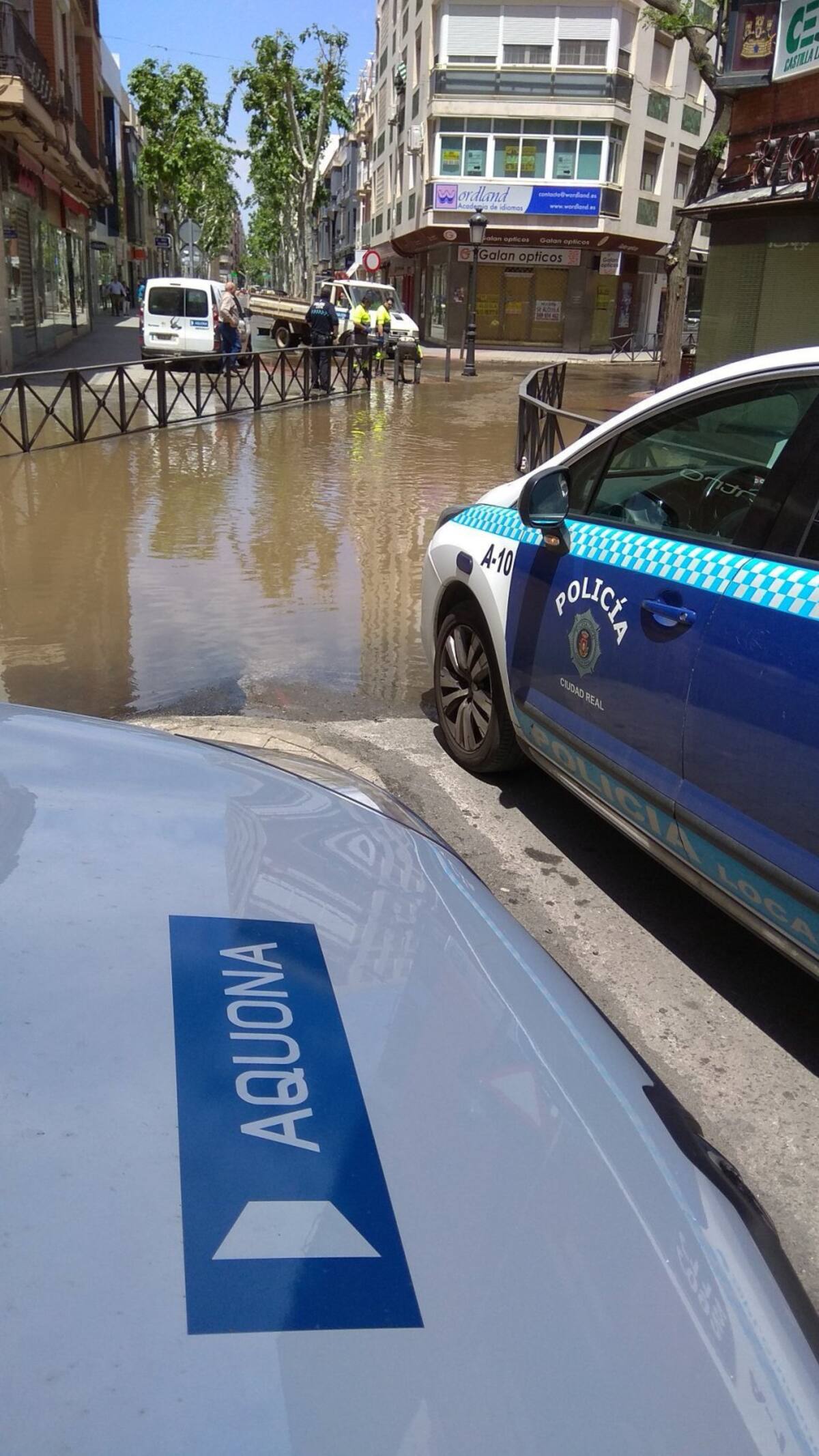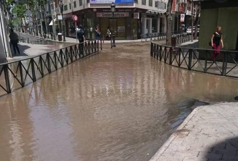 La rotura de una tubería en el centro de Ciudad Real inunda un local y obliga a cortar el tráfico