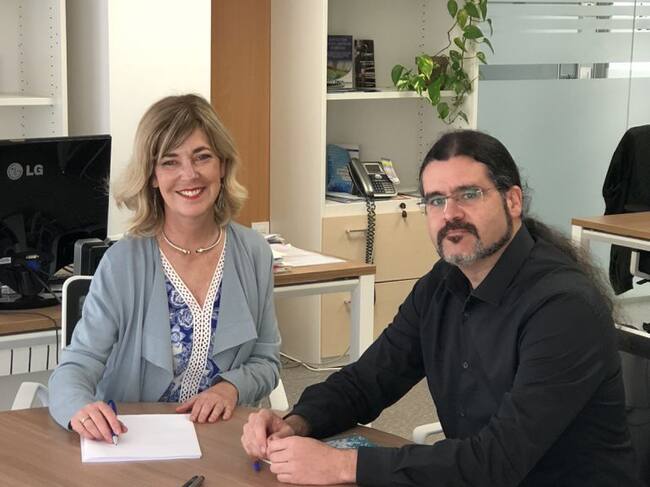 La investigadora de la UGR Germaine Escames y el técnico de la OTRI Juan Antonio Orellana / UGR