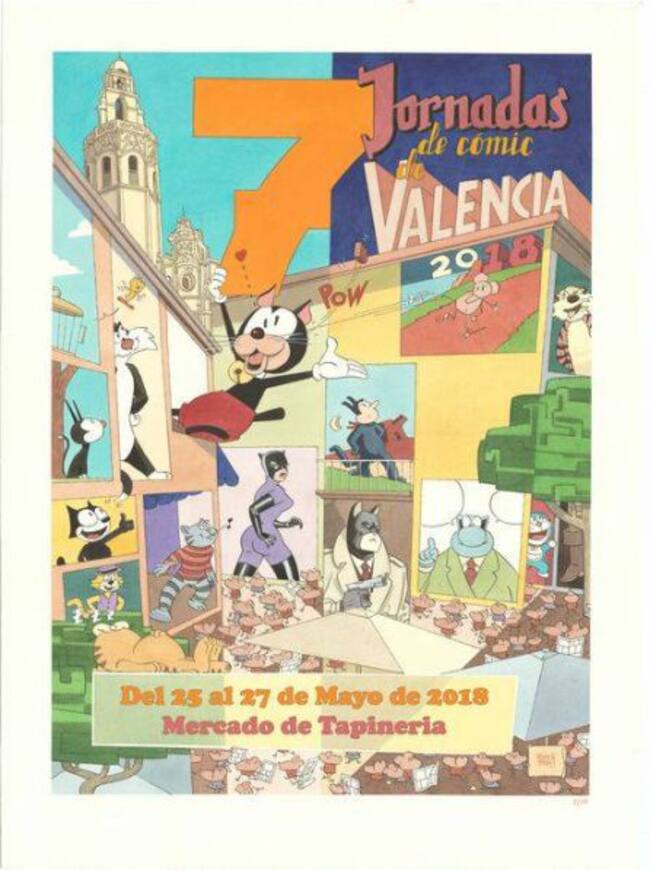 El cartel de esta edición ha sido realizado por el valenciano Daniel Torres ("Roco Vargas", "Opium", "Tom"), autor que comenzó a despuntar en lo que se denominó Nueva Escuela Valenciana en la década de los 80. Ha escogido como protagonistas a gatos personajes de cómic, como Pumby de José Sanchis, Garfield, Doraemon, Blacksad, Don Gato, Krazy Kat y otros que pueblan la plaza del mercado de Tapineria, donde se celebran las Jornadas.