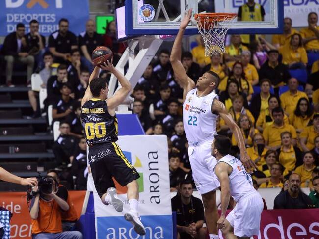 En un abarrotado Santiago Martín, el campeón de la Euroliga dejó atrás su fin de semana de celebraciones y volvió a ponerse el mono de trabajo. Así, amparado en un Walter 'Edy' Tavares que castigó a los canarios en el rebote ofensivo, el cuadro de Pablo Laso abrió con un parcial de 0-5 y lideró los primeros minutos en La Laguna.