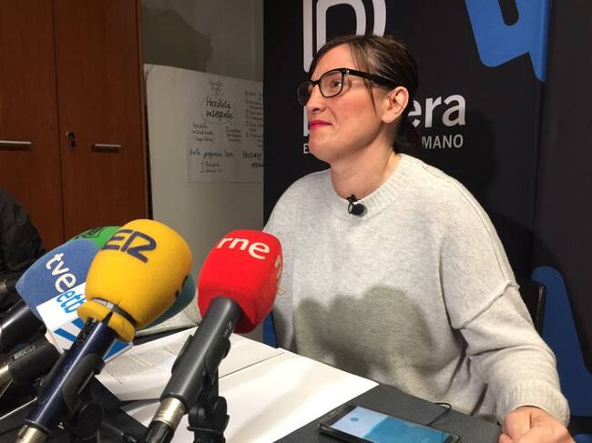 Tati Garmendia atiende a los medios en la oficina de Bidebieta / R.R