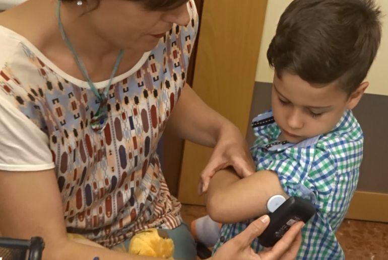Gabriel tiene cinco años y su calidad de vida ha mejorado porque ya no tiene que pincharse los dedos siete veces al día para realizarse estos controles. Su endocrina le ha prescrito el dispositivo Flash