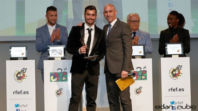 Cristian Fernández y Luis Rubiales presidente de la RFEF / Eidan Rubio RFEF