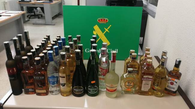 La Guardia Civil ha incautado 51 botellas de alcohol de alta graduación de origen búlgaro sin el correspondiente precinto fiscal aduanero lo que constituye una infracción a la Ley de Impuestos especiales.