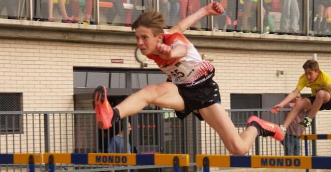 Manuel Caballero en plena acción en la prueba de 80 metros vallas / Julio Torrecilla