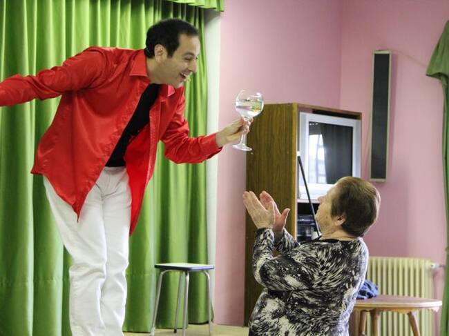 Ángel Simal durante la actuación en la residencia de ancianos El Alamillo en Cuéllar(Radio Cuéllar)