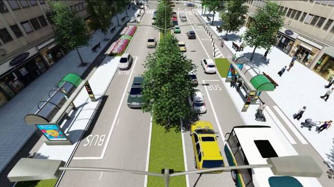 Una vez realizadas las obras, habrá dos carriles rodados por cada sentido de circulación. El transporte público circulará prioritariamente por el carril exterior, donde hará sus paradas sin apartadero.