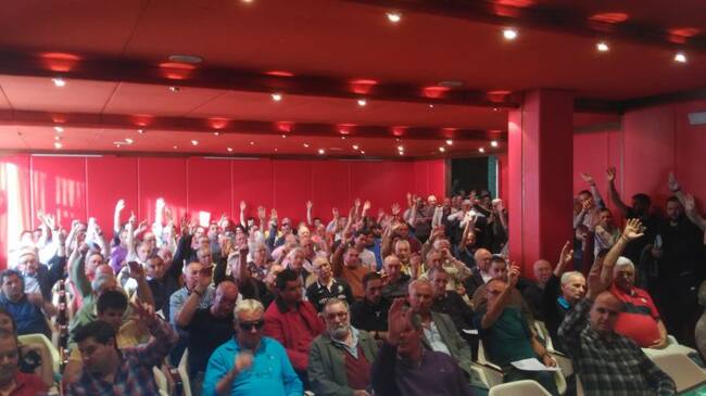 Los socios gimnástico votan en la asamblea de ayer / RSGT