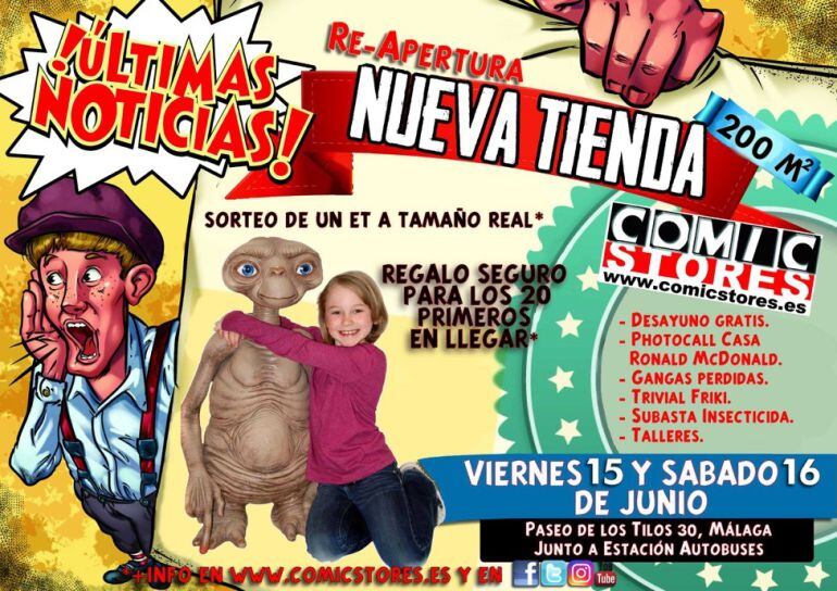 Comic Stores, la franquicia de cómic, manga, ciencia ficción, terror, fantasía épica, juegos de mesa y merchandising dedicado a estas temáticas, va a reabrir la tienda ubicada en el Paseo de los Tilos 30 de Málaga capital, junto a la estación de autobuses.