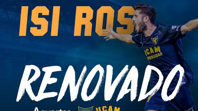Isi Ros continuará otra temporada en el UCAM Murcia. La cuarta consecutiva desde su fichaje en 2015. El de Las Torres de Cotillas colaboró en el ascenso a Segunda en 2016 y después de participar muy poco con Salmerón en los meses posteriores salió cedido en enero del curso siguiente al Cartagena. De vuelta a La Condomina, Isi Ros disputó una treintena de encuentros estos últimos meses y en la entidad universitaria se sigue viendo al habilidoso mediapunta como un futbolista de futuro (tiene 22 años) con mucha proyección.