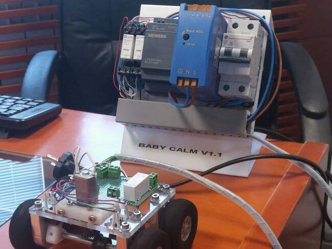 El prototipo 'Baby Calm V1.1' es capaz, de manera autónoma, de mecer un carrito de bebé. Los diseñadores del proyecto son Diego Vergara y Jorge Muñoz.