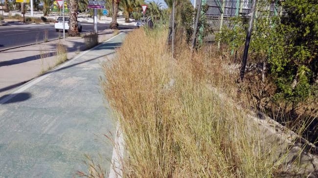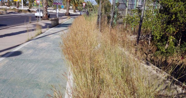 El portavoz adjunto de Ilicitanos por Elche, Fernando Durá critica la acumulación de hierbas y arbustos en las zonas de paso de peatones y bicicletas