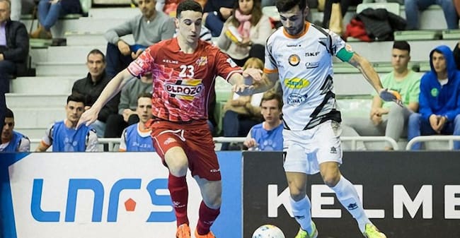 Piqueras intenta arrebatar el balón a un jugador de Aspil Vidal durante su etapa en El Pozo Murcia. / LNFS