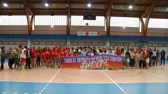 Más de 150 personas se reunieron en el pabellón de Coia para homenajear y dar ánimos a la esgrimista Judith Rodríguez. La joven de tan solo 22 años tuvo un accidente cuando volvía del Campeonato de España de esgrima, hace ya 2 semanas. Las lesiones que sufrió han terminado con la amputación de su pierna derecha. A pesar de ello, Judith evoluciona favorablemente y afronta lo ocurrido con ánimo y con ganas de volver, aunque su recuperación requiera de mucho tiempo. Varios clubes de esgrima y de otros deportes como el Celta de Baloncesto o el Club Vigo de Voleibol asistieron a la concentración para mostrar su solidaridad y grabar un video en el que se le daba ánimos a la deportista viguesa.El equipo español de esgrima femenino, porto durante el Europeo celebrado en Serbia, un lazo rojo como una muestra más de compañerismo y cariño hacia Judith . El concejal de deportes del Ayuntamiento de Vigo, Manel Fernández tampoco quiso faltar a este acto.