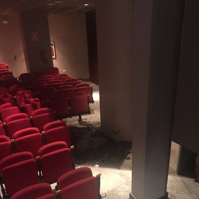 También se han producido goteras en la zona del vestíbulo. Ya se está trabajando para solucionar la avería y para el peritaje de los daños producido por el incidente. Desde la concejalía de Cultura del Ayuntamiento de Ibiza se trabaja también para reprogramar las actuaciones que han quedado aplazadas.