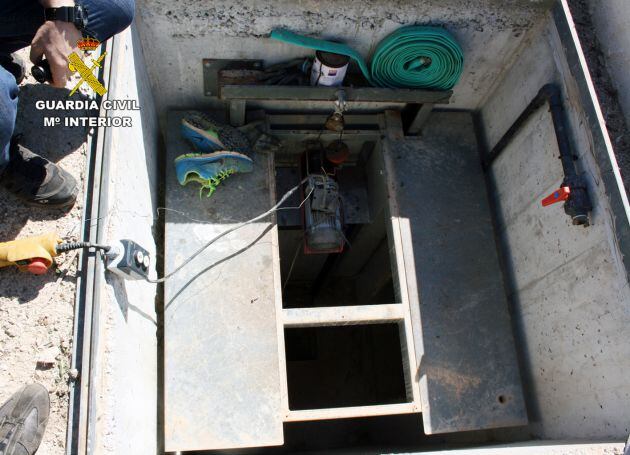 Los guardias civiles localizaron el mecanismo eléctrico del elevador y descendieron hasta un habitáculo subterráneo donde hallaron un sofisticado invernadero clandestino de plantas de marihuana.