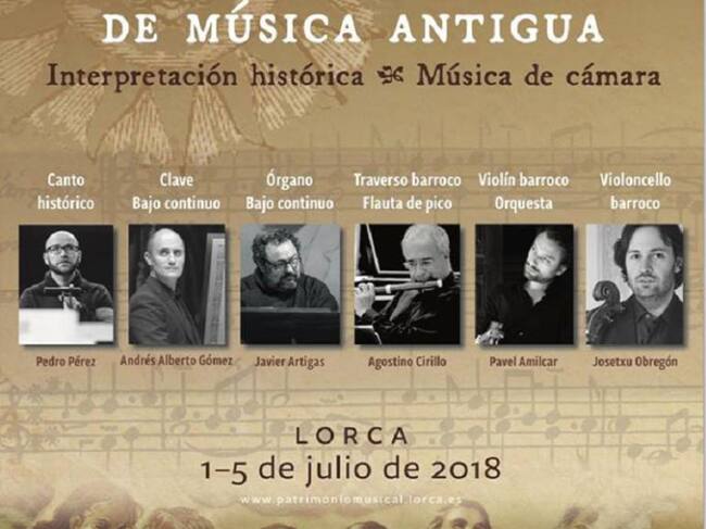 Lorca acogerá desde el domingo 1 de julio hasta el jueves 5 el II Curso Internacional de Música Antigua, organizado por la Asociación Patrimonio Musical y Amigos de la Música de Lorca, que se celebrará en octubre. La acción está dirigida a cantantes, instrumentistas, estudiantes, profesionales y grupos especializados en la interpretación histórica.