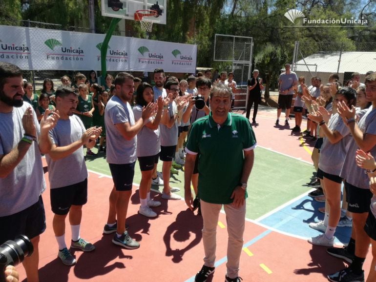 El técnico del Unicaja, Luis Casimiro, estuvo hoy en el campus Unicaja baloncesto, que se inició en su primer turno el sábado en la Residencia Andalucía. ç