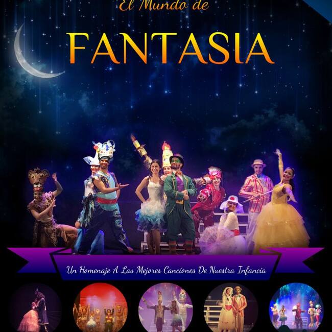 'El mundo de fantasía' es un musical con voces en directo y diez bailarines en escena, en el que niños y adultos de todas las edades disfrutarán durante más de 60 minutos con los personajes de siempre, recreándose en ese mundo de fantasía que todos llevamos dentro.