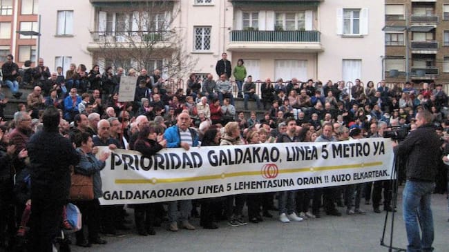 El alcalde achaca la ausencia del Metro en Galdakao a las instituciones vascas: "La llegada del Metro tendría que haber sido en 2016, después con cambios de gobierno, se priorizó la línea 3 a la línea 5". Añade que si fuera por él, el Metro ya habría llegado, pero que "las instituciones tienen otras prioridades".