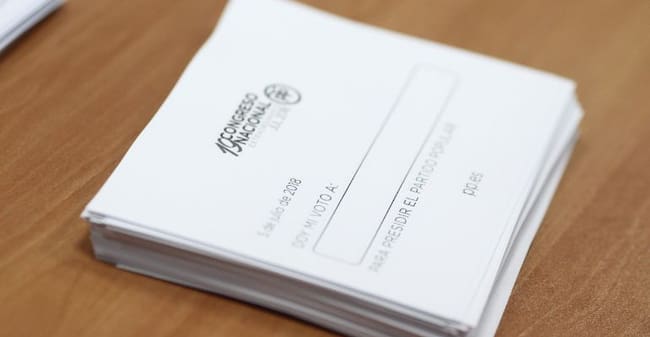 Imagen de papeletas para votar en las elecciones primarias del PP