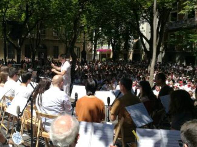 La nota musical de la jornada festiva a cargo de la banda Harmonie Bayonnaise, de Bayona. Y sin olvidarnos del 59 Alarde de Txistularis, dedicado a la naturaleza, el sol y el agua. Casi un centenar de músicos interpretando el espectáculo "Ama Lur, eguski eta Ur"desde la Plaza de San José.