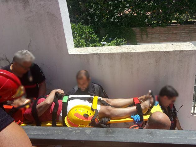 Una mujer de unos 60 años de edad ha sido rescatada este lunes, sobre las cuatro de la tarde, por los bomberos municipales de Málaga de la piscina vacía de su casa donde estaba realizando obras.