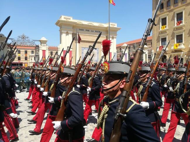 Son jóvenes, están entrenados para actuar en condiciones complicadas y con esfuerzo físico, pero aún así, el sol caía a plomo hoy sobre el patio de la Academia General Militar y, ante la sorpresa de muchos, algunos oficiales incluso se han desmayado durante la hora larga que tenían que estar en formación, ataviados con los trajes reglamentarios. Y todo, mientras los familiares allegados les miraban atentos, entre abanicos y algún que otro sofoco.