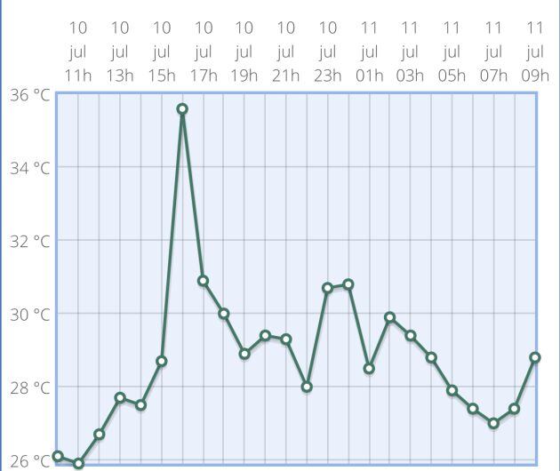 De momento, esta pasada madrugada se han alcanzado en la capital malagueña las máximas nocturnas del año con 31´5 grados (a las 00.20h ) en el entorno del Aeropuerto de Málaga. Meteorología calcula que la situación se pueda superar la próxima noche.
