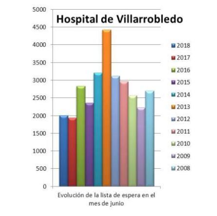 Son 354 personas menos que en junio de 2015, año de inicio de la presente legislatura, cuando ascendía a los 2.356. Eso sí, la mejor cifra registrada en un mes de junio fue la del año pasado, con 1.943 pacientes, 59 personas menos que este año. El máximo absoluto de la tabla sigue situándose en el ecuador de la legislatura de Cospedal, año 2013, cuando la lista de espera era de 4.424 personas, más del doble.