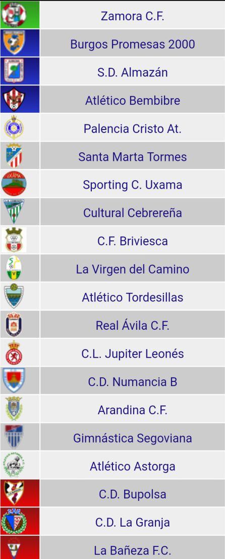 Bembibre (343) Astorga (299) La Virgen del Camino (262) León (260) La Bañeza (244) Cebrereña (203) Santa Marta (214) Zamora (192 kilómetros) Ávila (181) Briviesca (126) Tordesillas (123) La Granja (117) Segoviana (116) Almazán (115) Numancia B (114) Cristo (93) Burgos Promesas y Bupolsa (86) y Uxama (57)
