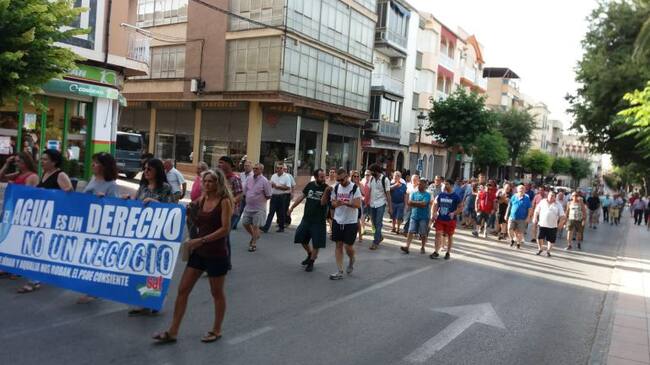 Los gritos que se escuchaban durante el recorrido: “El agua no se vende, el agua se defiende”, “Ahí enfrente estafan a la gente”… “Aqualia nos roba, el alcalde lo consiente”.