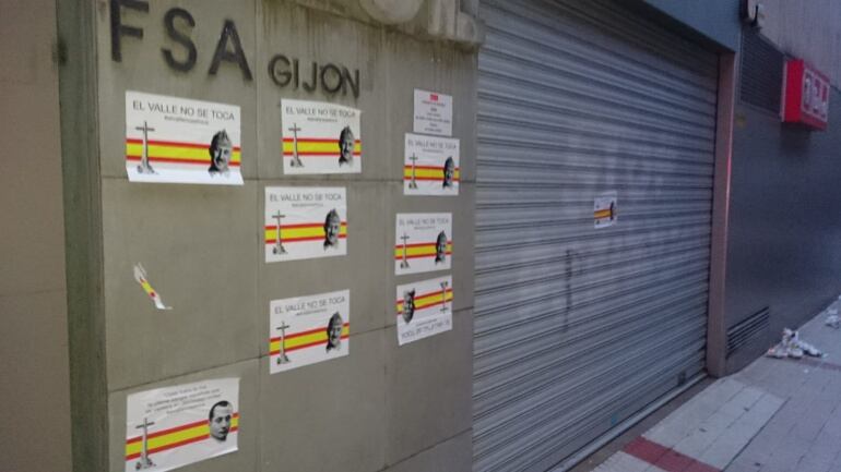 Las sedes del PSOE, Izquierda Unida y Podemos de Gijón han amanecido empapelados con pasquines fascistas contra los planes del Gobierno de exhumar los restos de Francisco Franco del Valle de los Caídos. La policía local ya ha identificado a los siete autores. Los responsables de las organizaciones lamentan comportamientos que consideran anacrónicos y residuales.