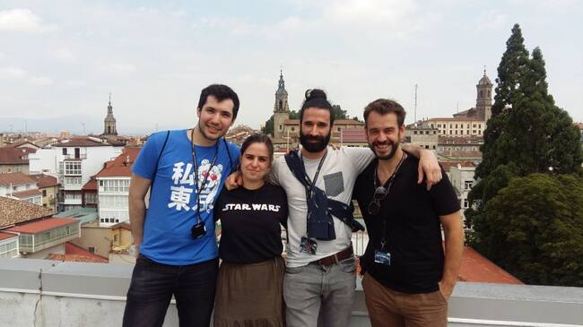 De derecha a izquierda, el codirector del campus de videojuegos y tres representantes de los equipos participantes. / Cadena Ser