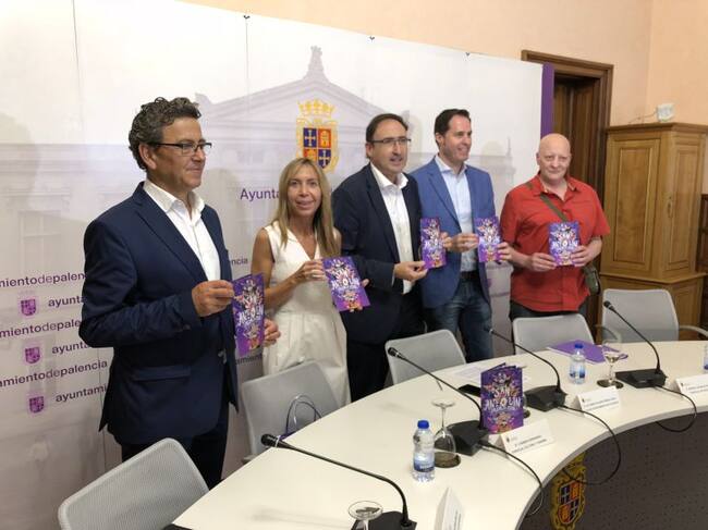 De izqda a dcha: Facundo Pelayo, concejal de Deportes; Carmen Fernández, concejal de Cultura; Alfonso Polanco, Alcalde de Palencia; Sergio Lozano, concejal de Fiestas y Luis Miguel Robles, representante del Consejo de Peñas / Roberto Lagartos