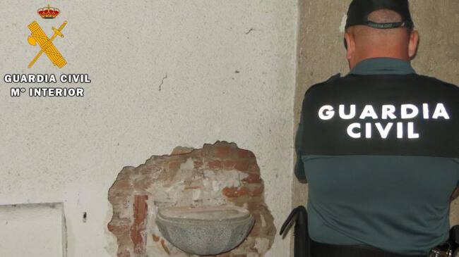 Pillados in fraganti cuando robaban la pila de agua bendita de una antigua iglesia de Venta de Baños