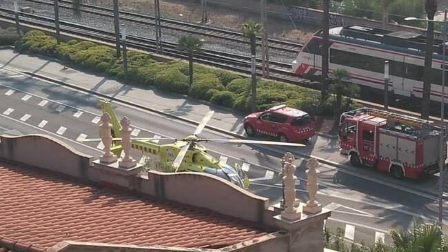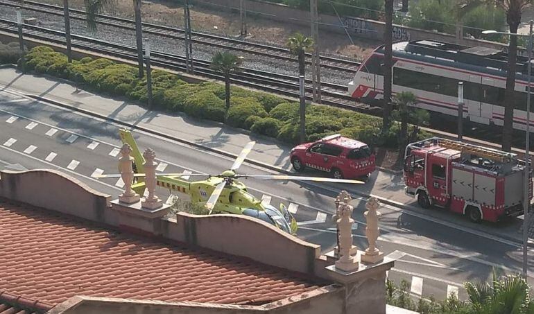 L’helicòpter del SEM ha aterrat al mig de la carretera per un atropellament a les vies del ferrocarril a Mataró. Han aconseguit treure amb vida la persona que havia quedat atrapada sota el tren