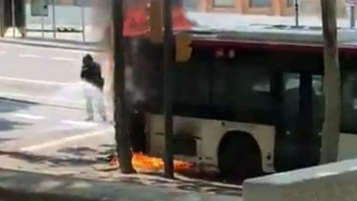 Un autobús s'incendia a Montjuïc