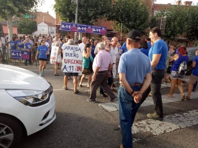 Valladolid, Soria y Burgos unen sus voces y protestas con un único fin: la ejecución de la Autovía del Duero. Centenares de vecinos se han dado cita en Peñafiel apoyando el primer acto protesta de la recién creada plataforma “A11 Pasos” y lo han hecho cortando de forma simbólica la nacional 122 a su paso por la localidad ribereña. Durante una hora no han cesado de cruzar un mismo paso de peatones provocando retenciones kilométricas en esta vía que une Valladolid con Soria.