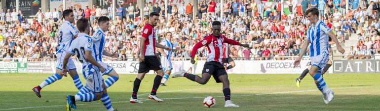 Un gol del delantero Iñaki Williams fue suficiente para que el Athletic se llevara el primer duelo vasco de la temporada ante una Real Sociedad que todavía tiene plomo en sus piernas y que fue dominada por el equipo de Eduardo Berizzo.