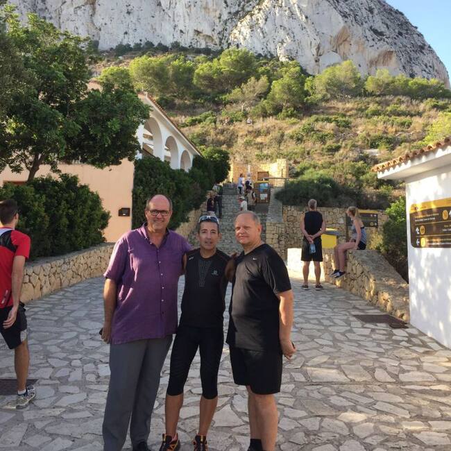 Jöel Robuchon junto a Jan Van Parijs y Vicente Miralles en el Penyal d'Ifac / Cadena SER