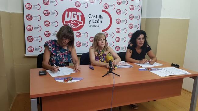 La secretaria de Servicios Sociosanitarios y Atención a la Dependencia de UGT Castilla y León - en el centro - junto a la secretaria del sector de la mujer e igualdad Yolanda Lucía - a la izquierda - y la representante de Segovia Mª José González(Radio Segovia)
