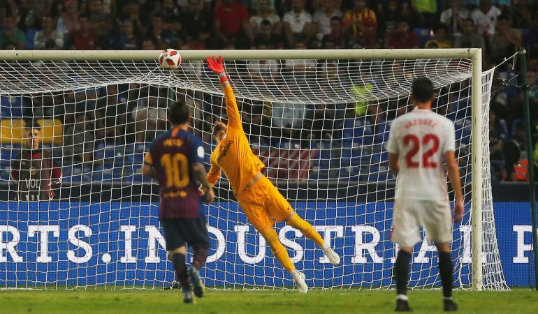 En los minutos finales el Sevilla intentó acercarse al área azulgrana y cuando todo parecía decidido, un penalti a favor de los andaluces les daba la oportunidad del empate para forzar la prórroga. Sin embargo, Ter Stegen atajaba el tiro de Ben Yedder y los de Valverde conquistaban de nuevo la Supercopa