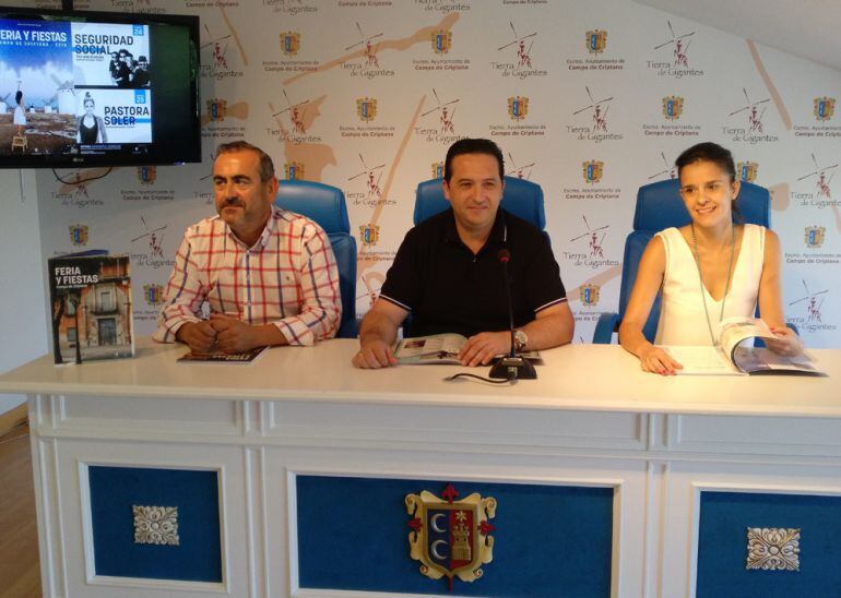 Del 23 al 28 de agosto Campo de Criptana vivirá un año más su Feria y Fiestas. El alcalde del municipio, Antonio Lucas Torres, presento este evento acompañado de los concejales de Festejos y Deportes, Ana Medina y Manuel Carrasco respectivamente.