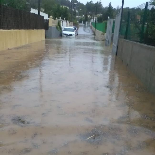 Lluvia torrencial este viernes en varias zonas de las Pitiusas. Se han recogido hasta 58 litros por metros cuadrado en Santa Eulària, 60 en Sant Jordi (Aeropuerto), 30 en Sant Josep y 46 en Vila. En Sant Antoni, según informan desde la Agencia Estatal de Meteorología, han caido 41 litros esta mañana, pero 15 de ellos en tan solo diez minutos. Han caído también 50 rayos.