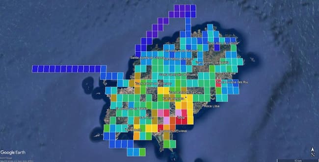 Mapa de calidad del cielo en Ibiza / Google earth